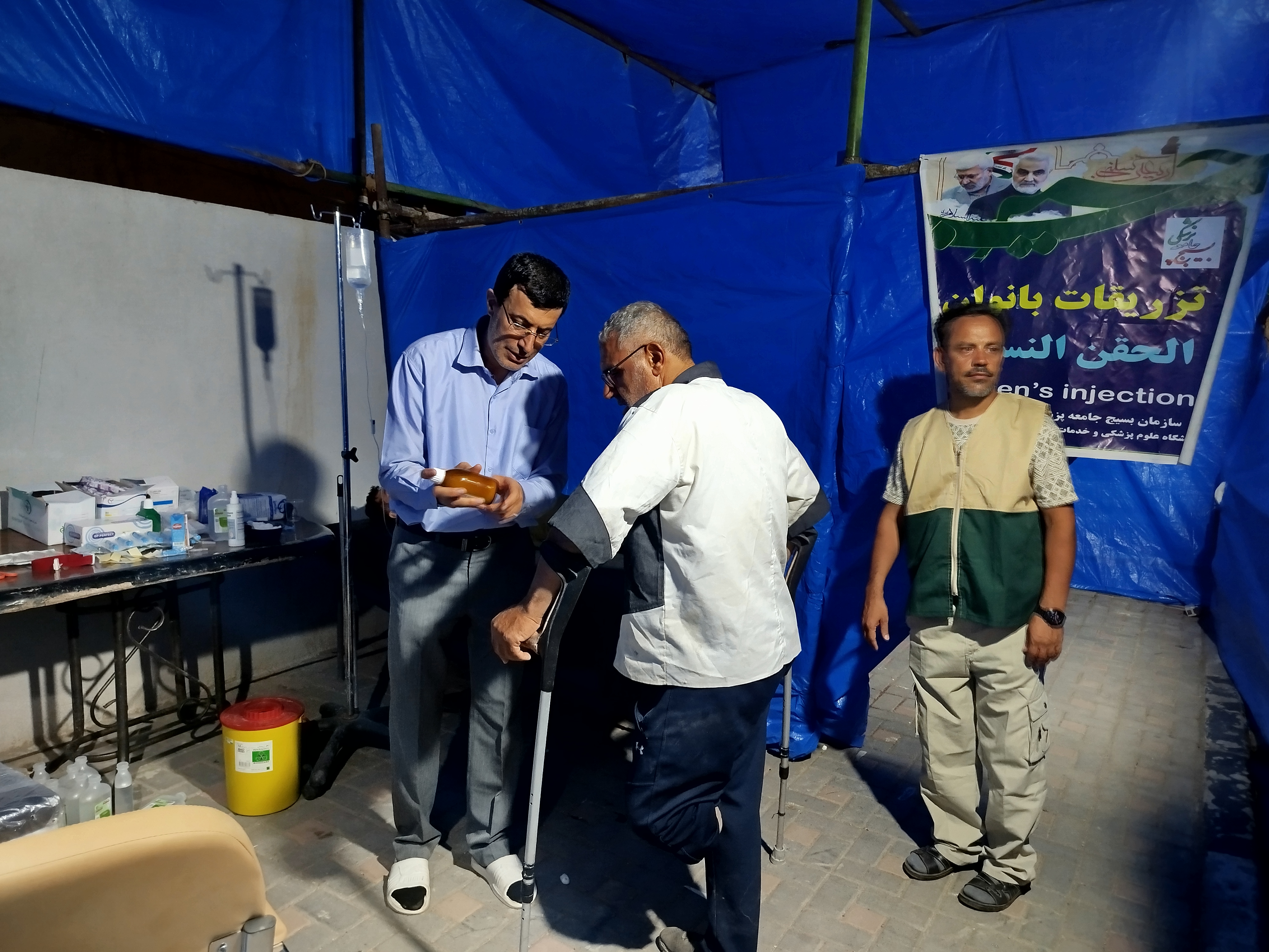 همزمان با فرا رسیدن اربعین حسینی(ع)، درمانگاه جهادی امام رضا (ع) در کربلا معلی با مشارکت بسیج جامعه پزشکی استان فارس خدمات درمانی رایگان به زائران ارائه شد